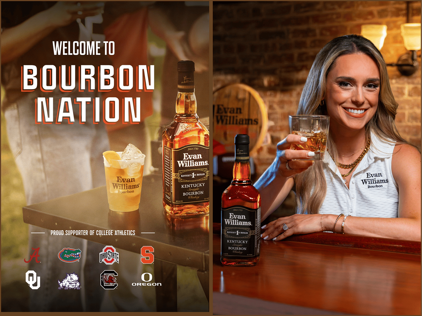 Evan Williams Bourbon is doubling down on college sports with the expansion of its Bourbon Nation platform, adding Oregon, South Carolina, and Oklahoma to its lineup of partner schools. The campaign, created with Learfield, now spans eight major programs and aims to keep fans fueled for game days with custom cocktails, tailgate activations, and in-arena promotions. ESPN sideline reporter Molly McGrath joins as the new brand ambassador, bringing her college sports credibility and energy to the role. Launching with the 2025 football season and rolling into basketball, Bourbon Nation continues to blend team spirit, tradition, and bourbon—with a steady reminder to drink responsibly.